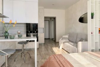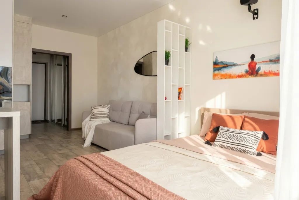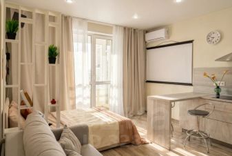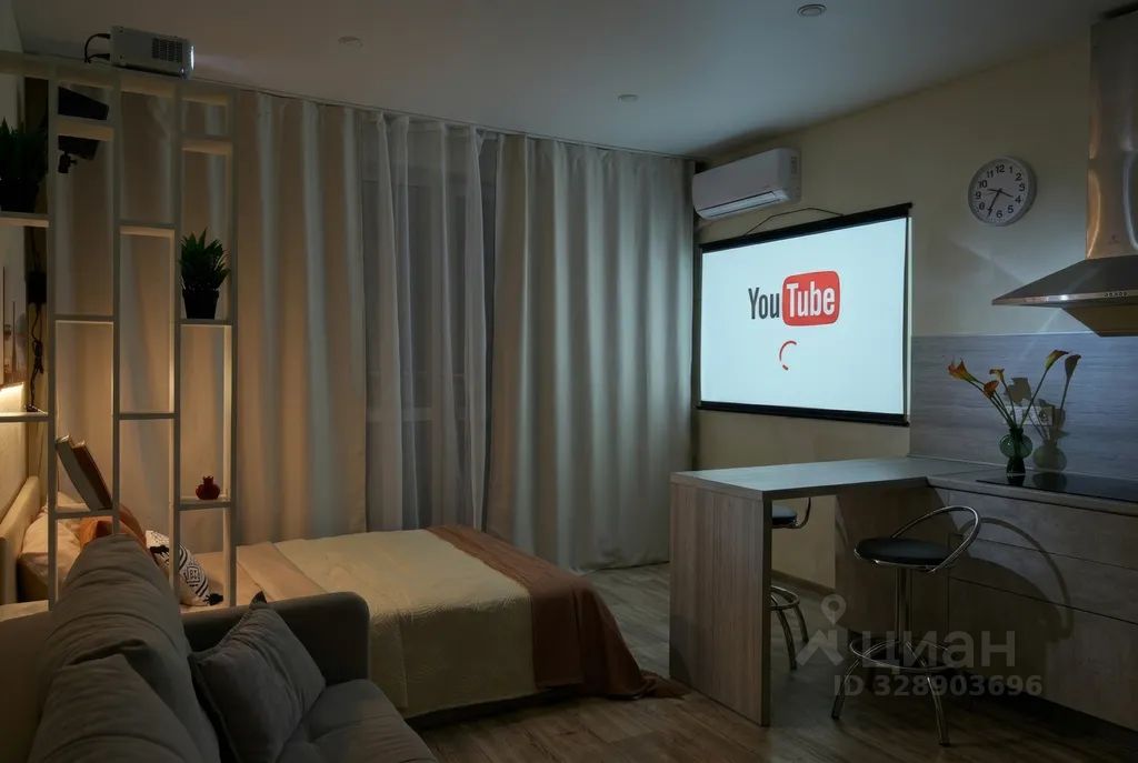 Уютная студия с проектором в современном ЖК "Планета".
