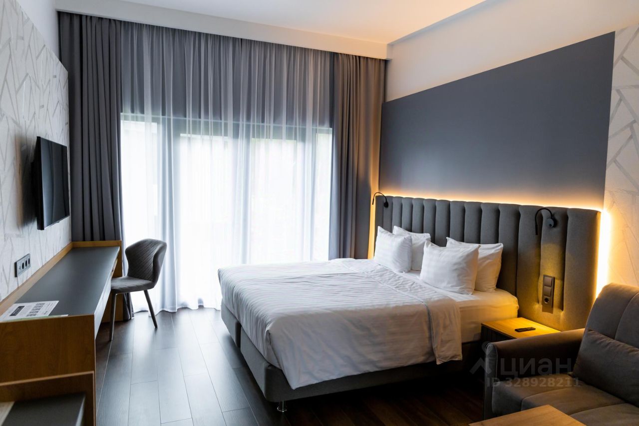 Однокомнатный номер площадью 24-27 кв.м. отличается функциональной рабочей зоной в спальне и имеет выход на индивидуальную террасу с зоной барбекю.