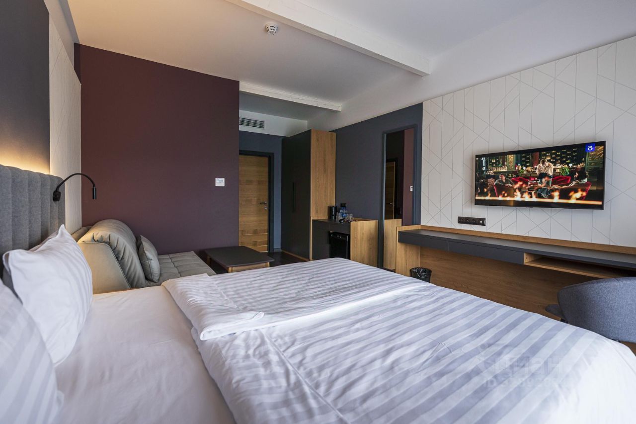 Максимальная вместимость номера 4 гостя, что станет отличным решением для семей (двуспальная кровать и диван-кровать).