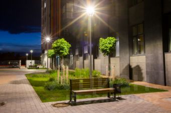 В доме круглосуточный консьерж. Закрытый охраняемый двор, оборудованный камерами видеонаблюдения, ночным освещением и фонтаном, работающим в летнее время. Игровые площадки для детей и подростков. Зеленый сквер с велодорожками и зонами отдыха.