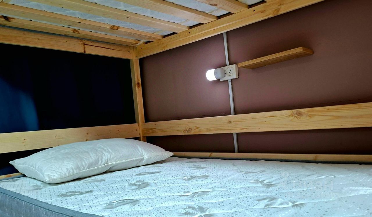 В хостеле 3 общих номера. 2 мужских номера и 1 женский номер. В каждом номере двухъярусные кровати. Нижний ярус кроватей закрыт шторами блэкаут. Верхний ярус без штор.