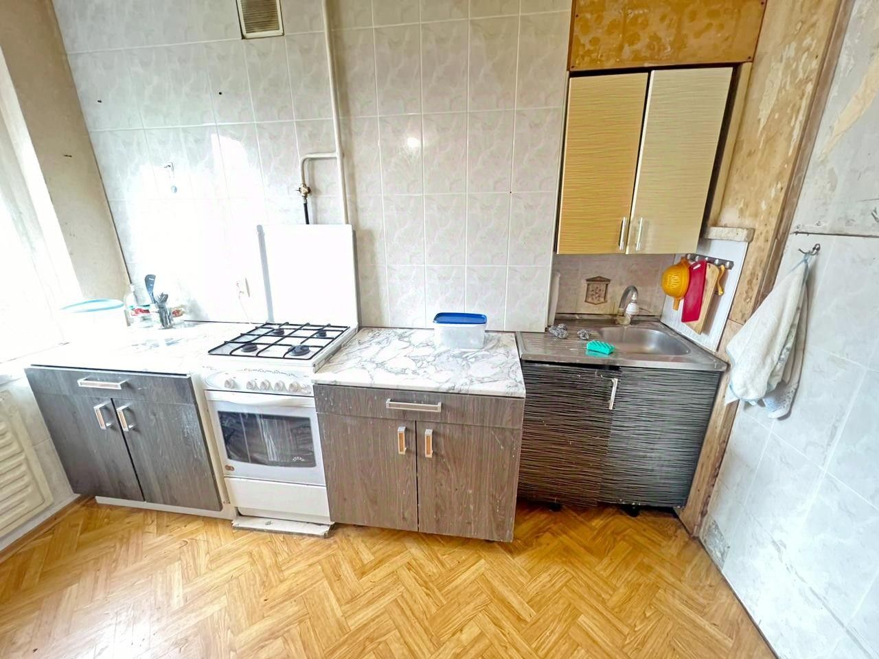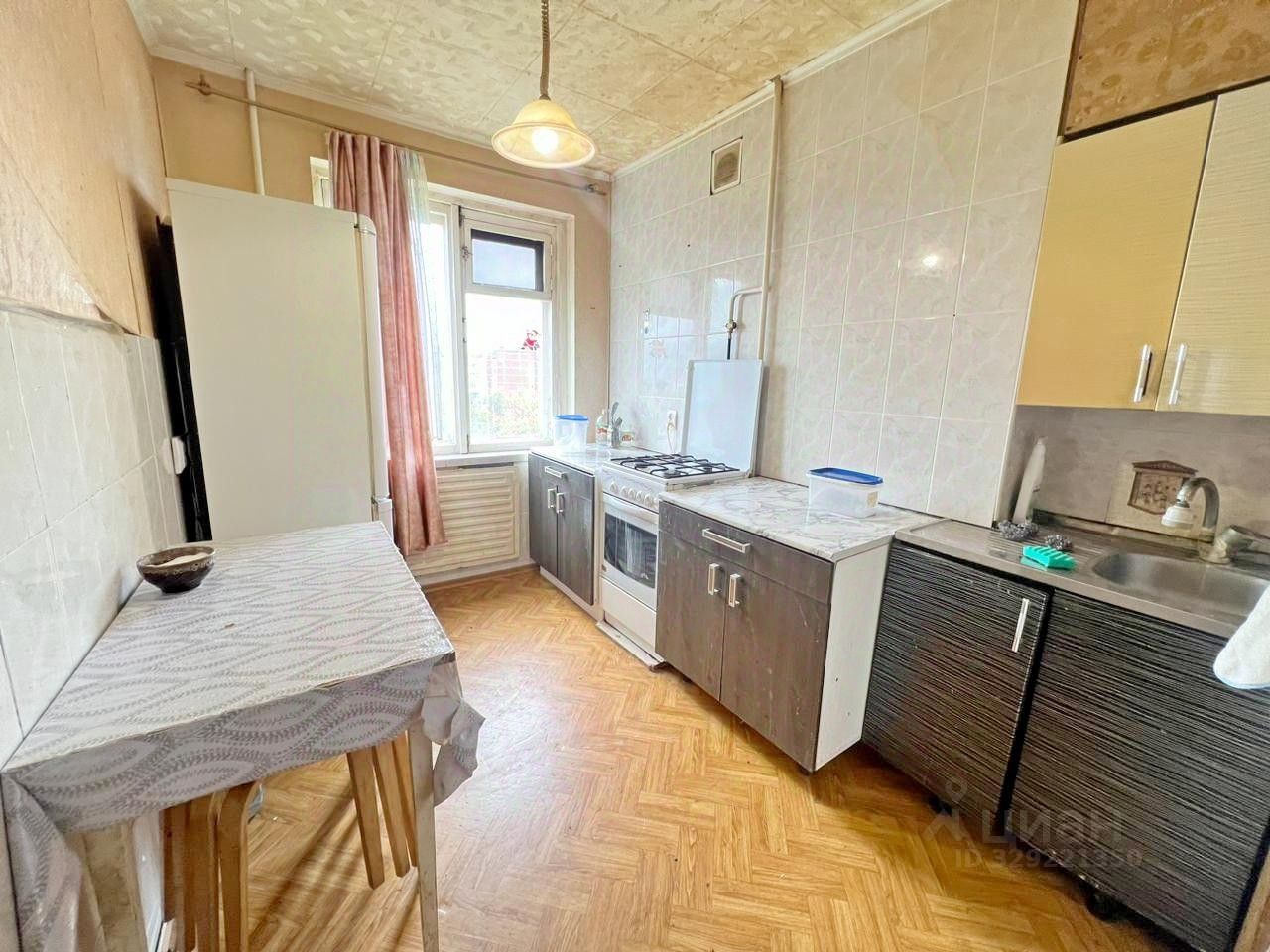 Есть мебель и бытовая техника: кухонный гарнитур, большой двухкамерный холодильник, обеденный стол и стулья, два дивана, шкаф , стиральная машина автомат, свч-печь, чайник, все для проживания. Красивый и благоустроенный район.