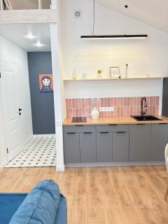 В квартире есть все для комфортного проживания: диван, двухспальная кровать с подушками, рабочий кабинет со столом (на 2 этаже),тв зона с вместительным комодом, кухня, новый холодильник, варочная панель, микроволновая печь, чайник, стиральная машина,столовые приборы