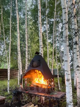 мангальная зона с шампурами и решеткой для приготовления вкусненьких шашлычков (угли привозите с собой)