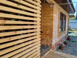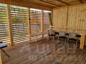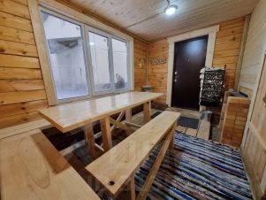 С бани выход на террасу 20 кв. м. С атмосферной гирляндой, большой стол и скамейки!