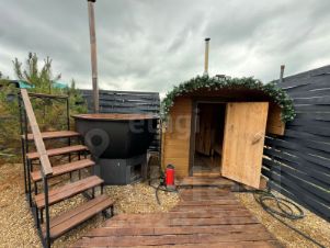 Баня и большой чан под открытым небом — идеальный вариант для вечера.