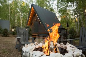 У каждого домика есть своя уличная зона отдыха с костровищем, удобными стульями и индивидуальным мангалом, своя веранда, которая оснащена столиком и стульями, навесом от солнца и японской баней-фурако (горячая купель).