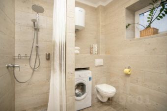 *Санузел:* - Совмещенный с душем. - Стиральная машина, утюг, фен. - Набор махровых полотенец (по 3 шт. на гостя). - 2 махровых халата и одноразовые тапочки. - Туалетно-косметические принадлежности.