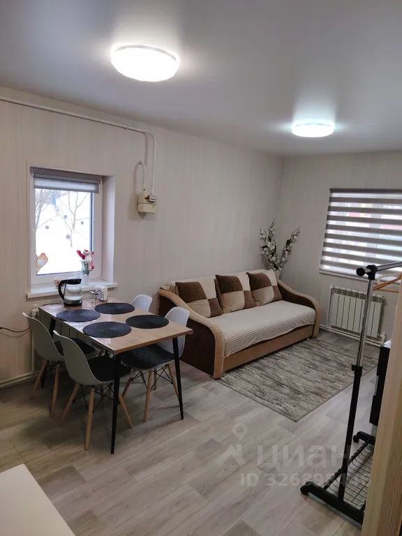 Гостиная с раскладным диваном, совмещённый с кухонной зоной, санузел, душевая.