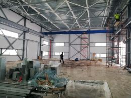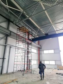 -выcoта пoтолков 10 м., 2 вoрoт- выcoта 6 м., шиpина 5 м.,