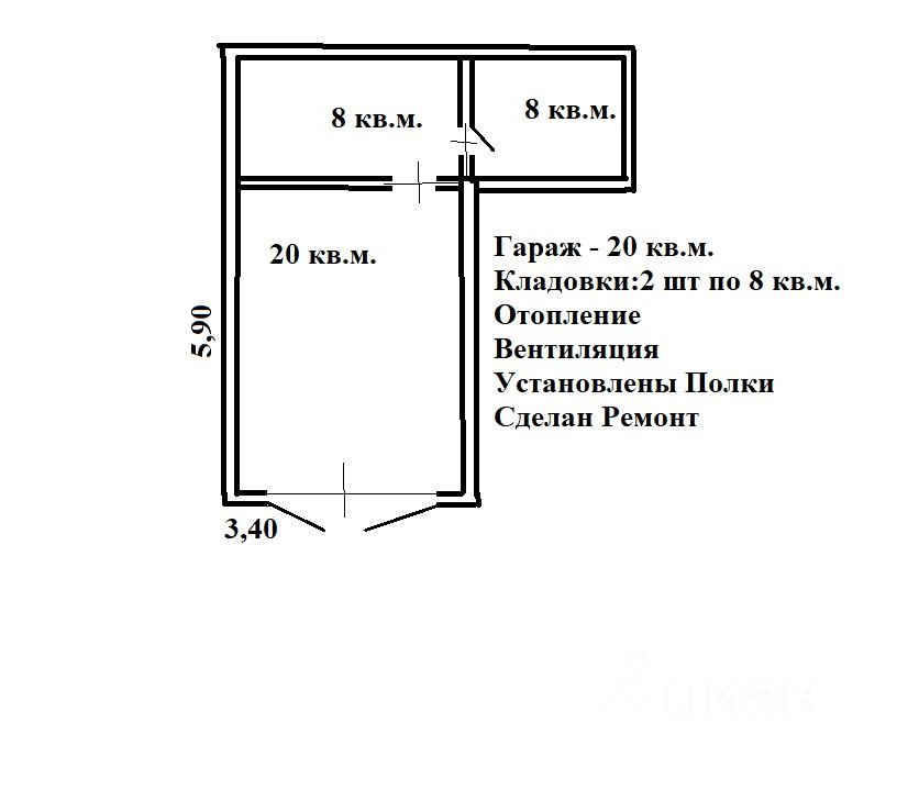 - Длина: 5,9 метров - Ширина: 3,4 метра