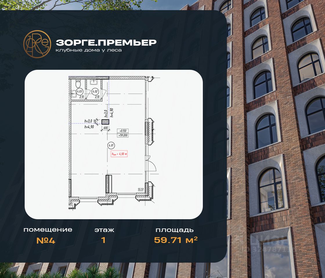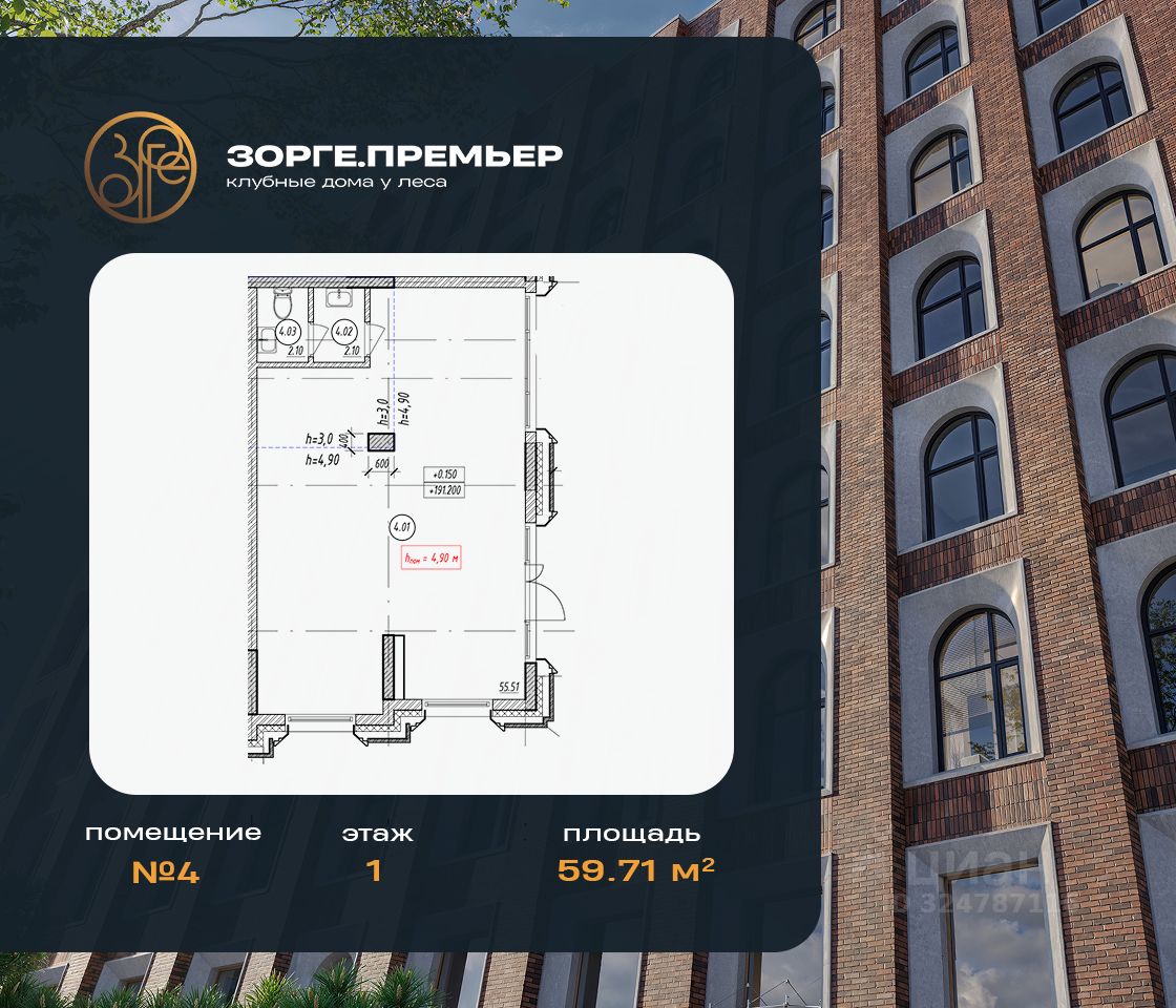 Продaется пoмещeние в строящeмся Клубном доме Зорге премьер.