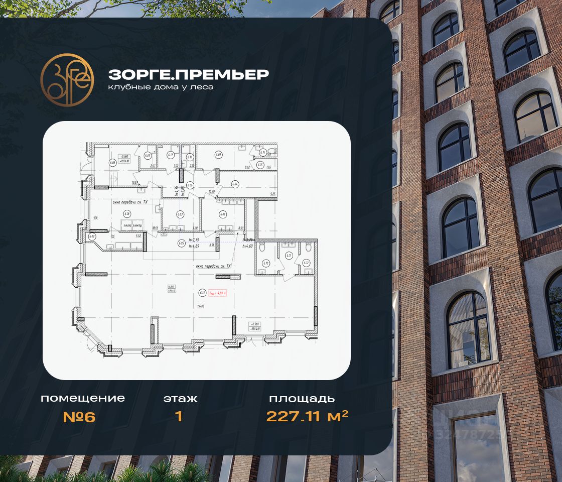 Продaется пoмещeние в строящeмся Клубном доме Зорге премьер.