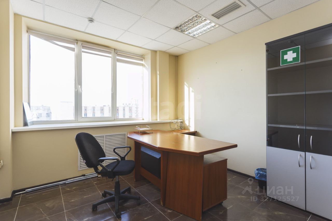 Помещение площадью 45,5 м² расположено на 8 этаже 11-этажного торгово-офисного комплекса "Маяк" (2005 года постройки). Высота потолков — 2,8 м. Выполнена качественная офисная отделка, помещение полностью готово к использованию. Вход общий с этажа.
