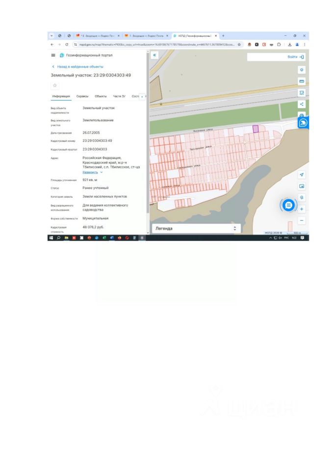 Земельный участок, кадастровый номер 23:29:0304303:49, местоположение: Краснодарский край, р-н Тбилисский, Тбилисское сельское поселение, ДНТ "Стимул", ул. Малиновая, 54, категория земель: земли населенных пунктов, виды разрешенного использования: для ведения коллективного садоводства, площадь: 921 кв.м.