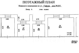 Объект муниципального нежилого фонда нежилые помещения подвала девятиэтажного жилого здания (кадастровые номера 02:55:010261:729, 02:55:010261:730, 02:55:010261:110), расположенного по адресу: Республика Башкортостан, г. Уфа, Ленинский район, ул. Гафури, 19/1. Площадь объекта: 327,1 кв.м., в том числе: - нежилое помещение (кадастровый номер 02:55:010261:729) 260,2кв.м. - нежилое помещение (кадастровый номер 02:55:010261:730) 54,6 кв.м. - нежилое помещение (кадастровый номер 02:55:010261:110) 12,3 кв.м. Этаж / этажность: Подвал / 9. Прочие характеристики, техническое состояние: год постройки: 1989, материал стен: кирпич, высота помещений: 2,50м, наличие коммуникаций: центральное отопление, электроснабжение, водоснабжение, канализация. В Объекте имеются общедомовые коммуникации. Покупатель обязан обеспечивать свободный доступ соответствующим службам в целях ремонта коммунальных, инженерных, электрических, других линий и сетей.