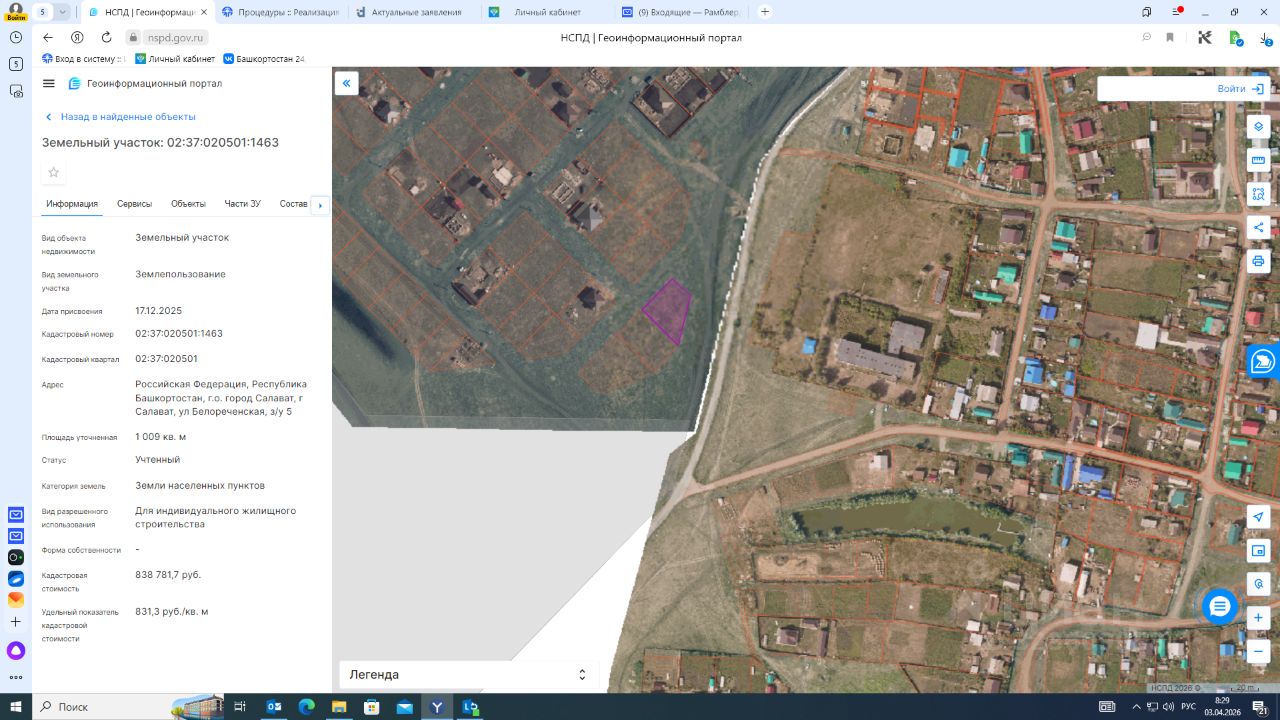 Земельный участок, расположенный по адресу: Российская Федерация, Республика Башкортостан, г.о. город Салават, г Салават, ул Белореченская, з/у 5, площадью 1009 кв.м, кадастровый номер: 02:37:020501:1463, с видом разрешенного использования "Для индивидуального жилищного строительства".