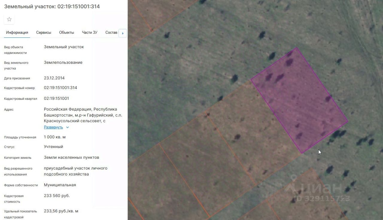 Земельный участок с кадастровым номером 02:19:151001:314, площадью 1000 кв. м, расположенного по адресу: Республика Башкортостан, Гафурийский район, с/с Красноусольский, с. Красноусольский, ул. Лазурная, з/у. 52, с видом разрешенного использования "приусадебный участок личного подсобного хозяйства"