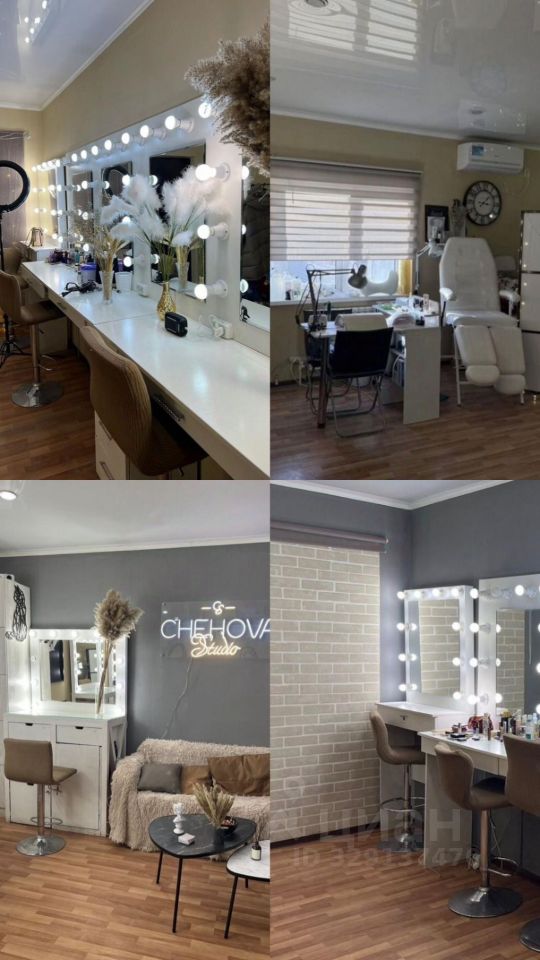 10 рабочих мест для визажистов/ бровистов/ стилистов по прическам и т.п., 1 рабочее место для мастера маникюра и педикюра, зона ожидания, обеденная зона, холодильник, видеосвет, фотозоны, кондиционер, небольшая витрина с украшениями, а также мини-шоурум, подробности спрашивайте лично.