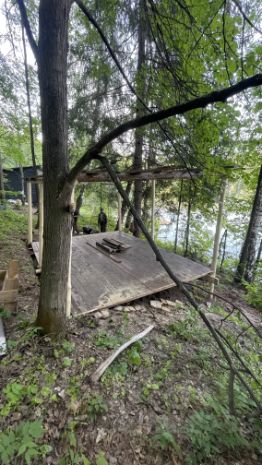 На участке имеется 7 новых ульев на 12 пакетов, домик из липы для проживания , можно переделать под баню , походная баня, беседка, деревянные дорожки , 2 понтона для купания парковки катера.