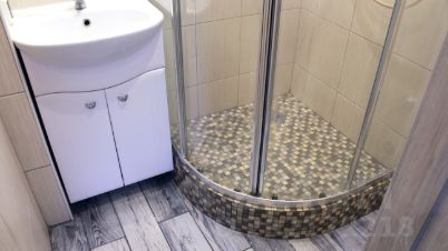 Санузлы после полной реконструкции-стены по маякам, реализованы ниши, все трубы водоснабжения и канализации скрыты, душевая с подиумом из мозаики, делалась на заказ. Теплый пол из керамогранита в ванной, и туалете. Встроен проточный водонагреватель, горячая вода есть в любое время года.