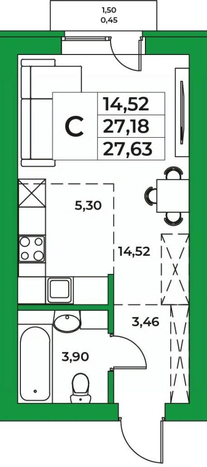Продается 1-к квартира в ЖК Зубово Life Garden. 8-й этаж 9 - этажного жилого дома, общая площадь 27.63 кв. м., жилая площадь 14.52 кв. м., кухня 5.3 кв. м.