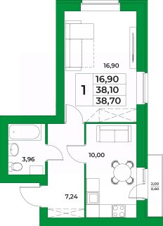 Продается 1-к квартира в ЖК Михайловка Green Place. 5-й этаж 8 этажного жилого дома, общая площадь 38.7 кв. м., , кухня 10 кв. м. кв. м.