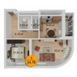 Продается просторная полноценная двухкомнатная квартира 54 м2 в новом доме (2017 года).