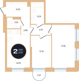 Продается 2-к-комнатная квартира в ЖК Зорге. Премьер от ГК "Жилстройинвест". 9-й этаж 15-этажного жилого дома, общая площадь 64 кв.м., жилая площадь 28.7 кв.м.