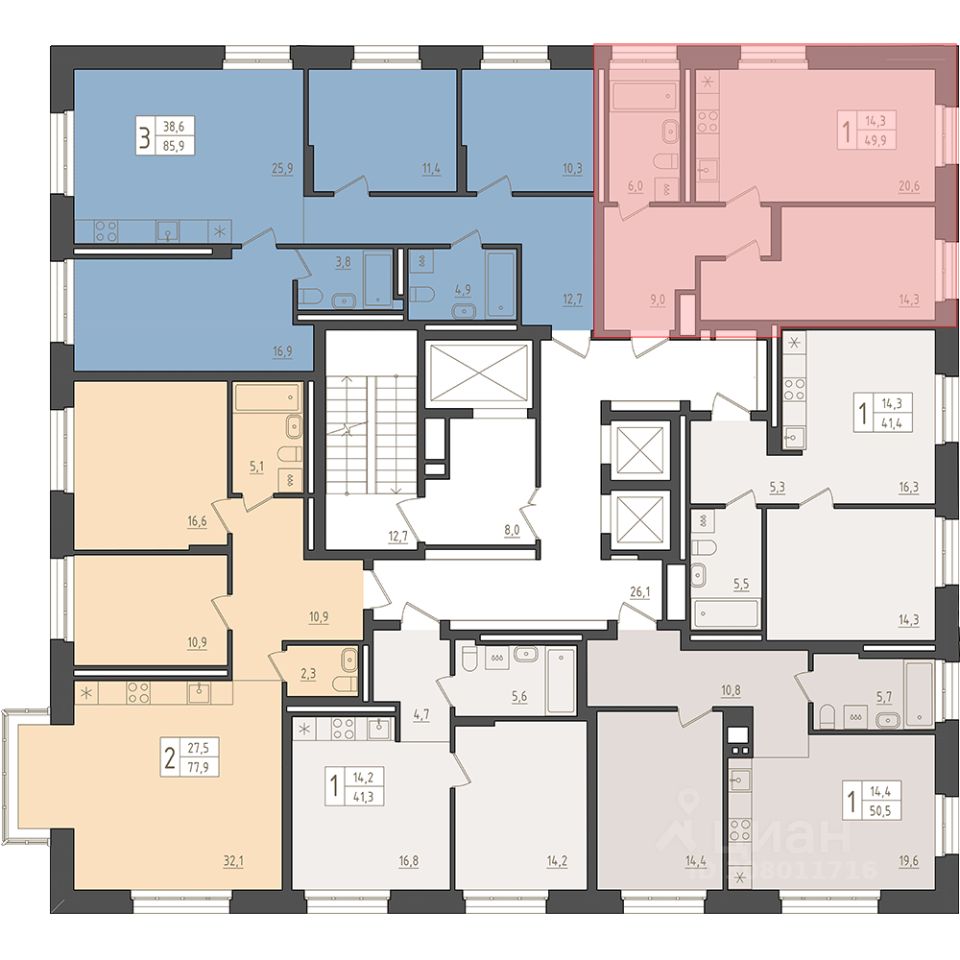 10-й этаж 23 - этажного жилого дома, общая площадь 49.9 кв. м., жилая площадь 14.3 кв. м. Срок окончания строительства: 1 квартал 2029 года