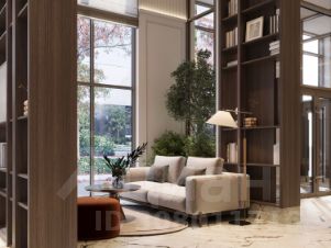 • Лаунж-гостиная с камином и выходом на террасу с ландшафтным озеленением.