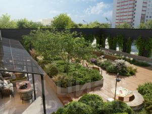• Лаунж-гостиная с камином и выходом на террасу с ландшафтным озеленением.