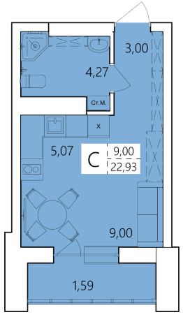 Студия, 22,93 м²