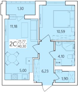 2-комн. квартира, 40,3 м²