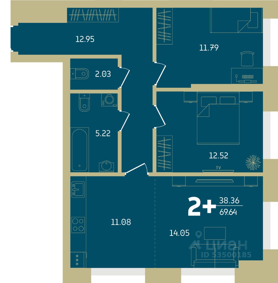Продаются 2-комнатные апартаменты в строящемся доме (литер 2), срок сдачи: IV-кв. 2026, общей площадью 69.64 кв.м., на 21 этаже. Апартаменты Central Park находятся в центре Уфы на пересечении улиц Мустая Карима и Революционной.