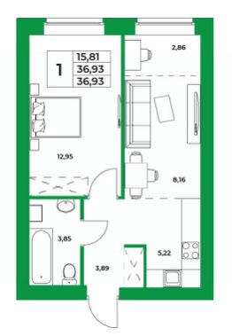 Продается 1-к квартира в ЖК Зубово Life Garden. 7-й этаж 9 этажного жилого дома, общая площадь 36.93 кв. м.