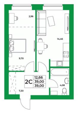 Продается 1-к квартира в ЖК Зубово Life Garden. 9-й этаж 9 этажного жилого дома, общая площадь 39 кв. м.
