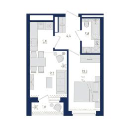 13-й этаж 22 - этажного жилого дома, общая площадь 34.1 кв. м., жилая площадь 20.1 кв. м. Возможна ипотека от банков-партнеров. Срок окончания строительства: 2 квартал 2026 года