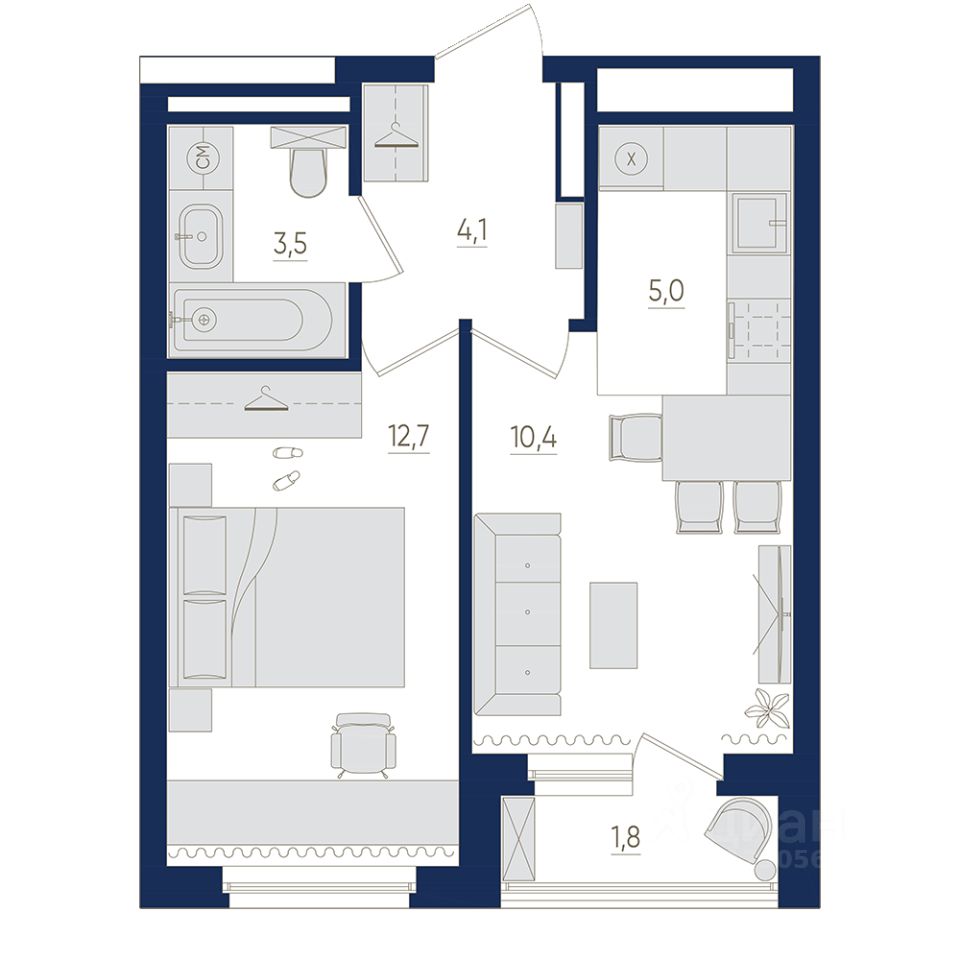 Жилая площадь22,7 м²