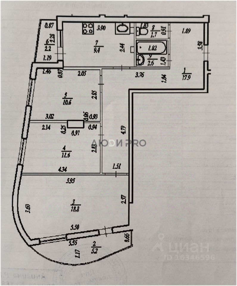 Квартира расположена на 8-м этаже 12-ти этажного дома.