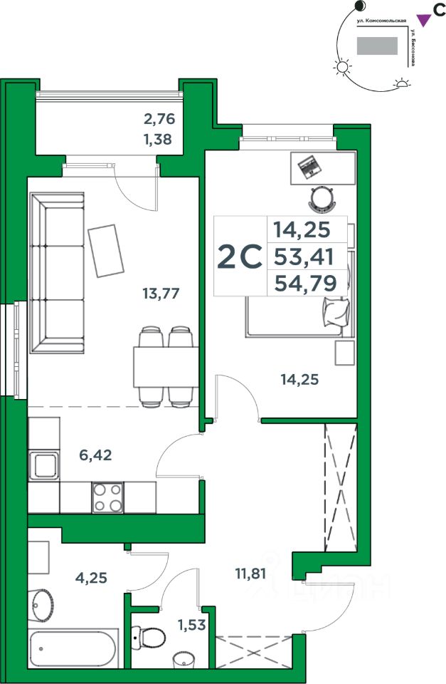 53,41 м²