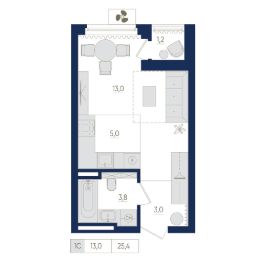Общая площадь25,4 м²