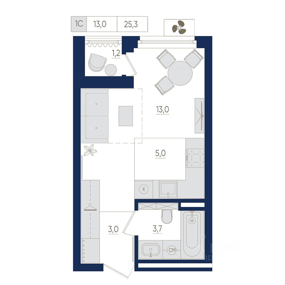 Общая площадь25,3 м²