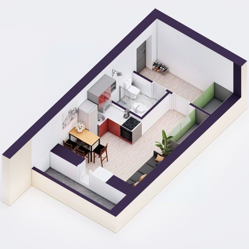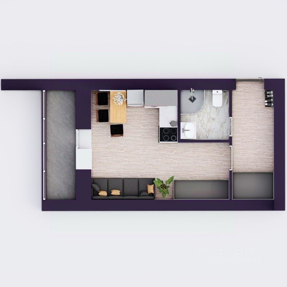 лоджия — 1,95 кв.м.,