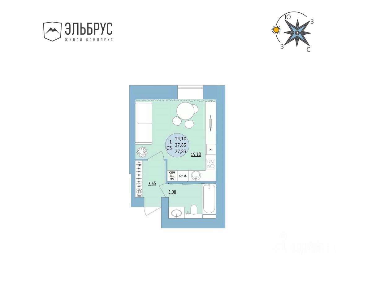 Продается квартира-студия в ЖК "Эльбрус":
