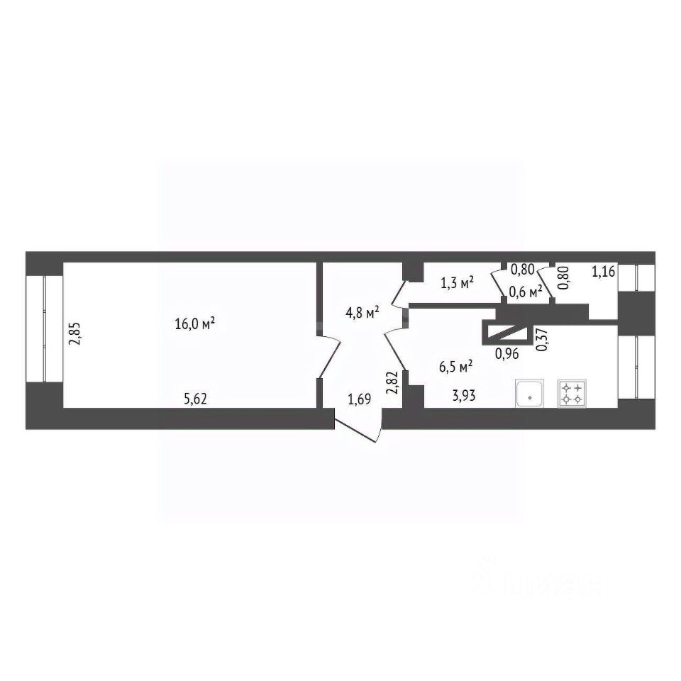 Общая жилая площадь — 16 кв. м.
