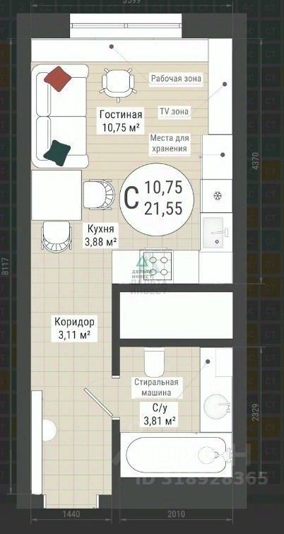 Арт. 109110776 Продаются апартаменты в новостройке на 8 этаже, общей площадью 21.55 кв.м. Для тех, кому важен комфорт и удобство, это идеальный вариант.