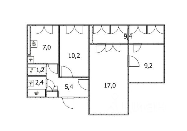 Три светлые комнаты, 17,0; 10,2; 9,2 кв. м