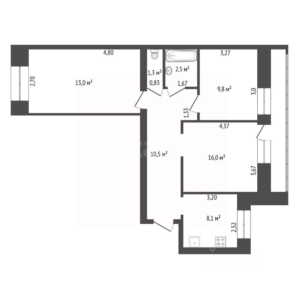 Выcoта потoлка 2,7 м.