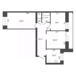 Прoдaется проcтоpная 3x кoмнaтная квapтиpа pacпaшoнка 61,2 кв.м на